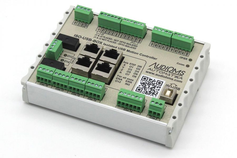 ISO-USB-BOX je 6-osni kontroler kretanja razvijen za upotrebu iz popularnog Mach3 upravljačkog CNC programa na Windows XP, 7, 8, 8.1 i 10 operativnim sistemima sa 32-bitnom (x86) i 64-bitnim (x64) arhitekturom. Kontroler kretanja ima na sebi ugrađen izolacioni USB port čime se postiže galvanska izolacija između kontrolera kretanja i računara koji se koristi za upravljanje. Time je značajno povećana pouzdanost upravljačkog sistema u zahtevnom industrijskom okruženju.