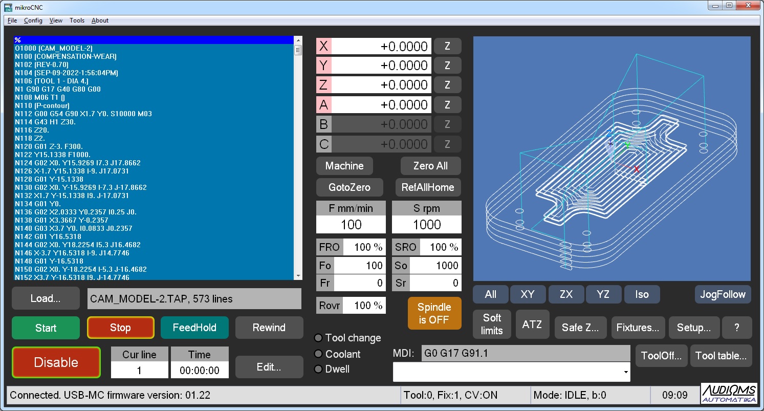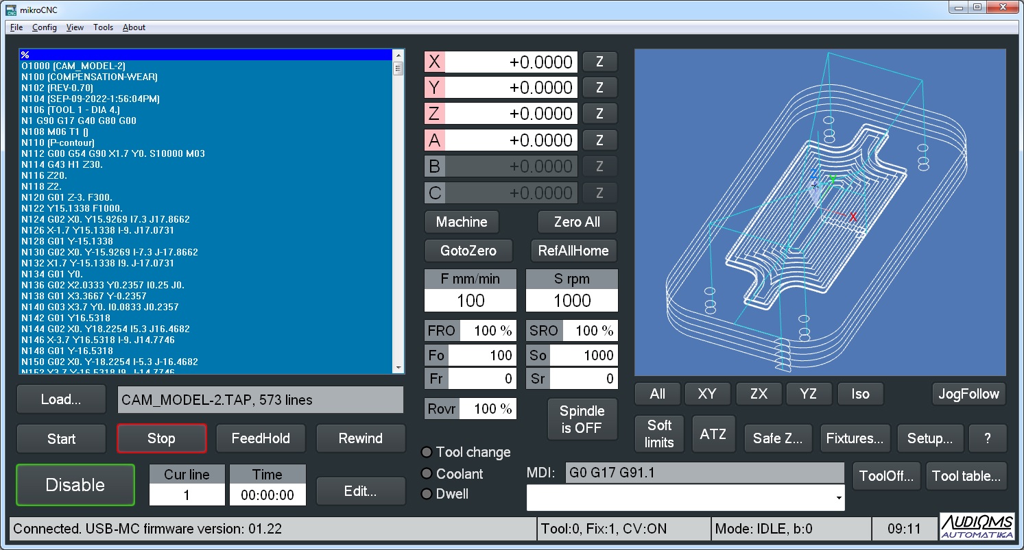 - Mogućnost ažuriranja firmvera iz mikroCNC programa za sve Audioms kontrolere kretanja