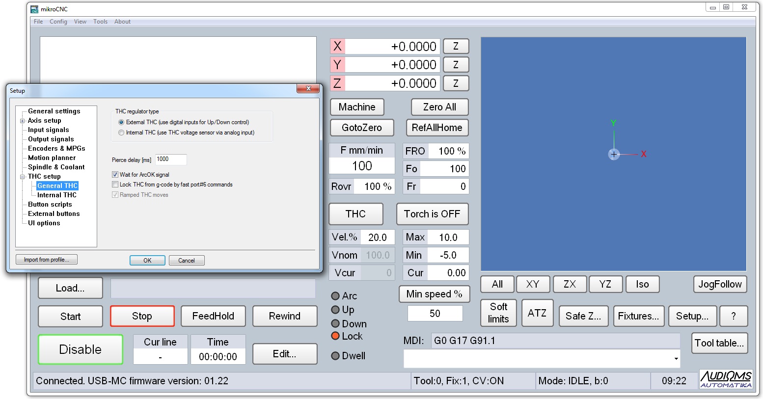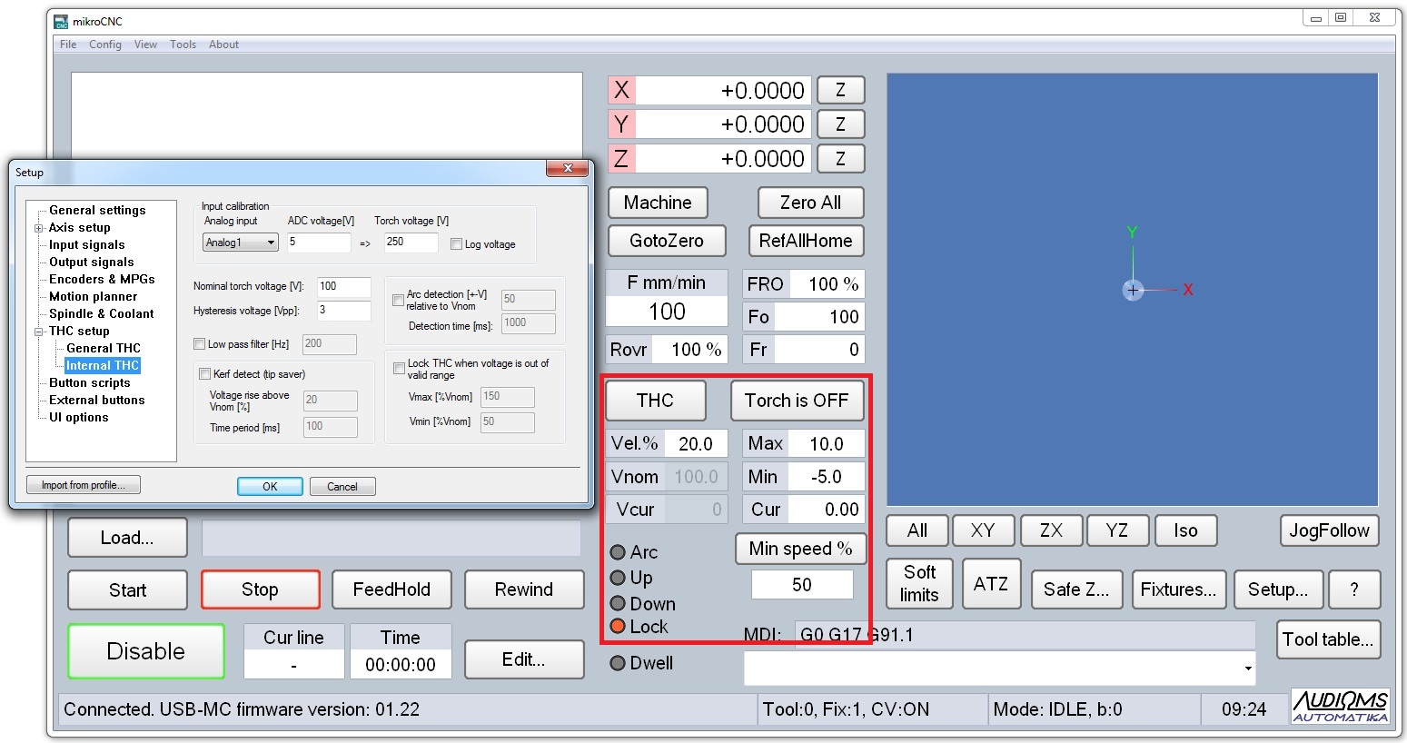 - Podrška za THC funkciju (interni i eksterni regulator) i mogućnost odabira THC/Plasma ekrana