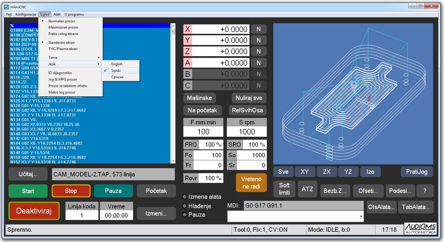 Softver mikroCNC podržava sve Audioms Automatika kontrolere kretanja: