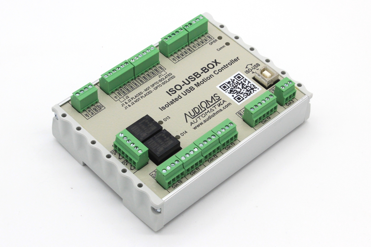 Svi izlazi i ulazi su dostupni preko razdvojivih konektora, tako da se sve periferije lako povezuju na ISO-USB-BOX kontroler kretanja.