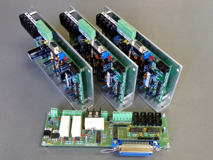 Nova verzija DC servo drajvera DCS-140. Poboljšanja: novi 16-to bitni mikrokontroler, poboljšan enkoderski interfejs, softverko podešavanje PWM učestanosti, rele za uključenje kočnice DC motora
