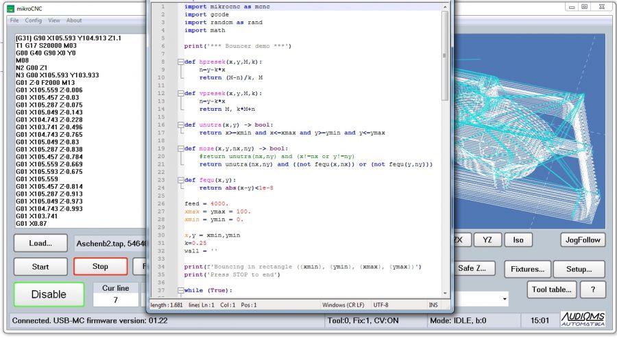 mikroCNC softver za upravljanje CNC mašinama od verzije V0.46 podržava interpreter za Python 3.x skripte. Na taj način mikroCNC dobija značajno povećanje svoje funkcionalnosti, obzirom da sada korisnici mogu samostalno da pišu svoje skripte i da izvršavaju specifične zahteve, u koje spada automatizacija, automatska izmena alata (ATC) i sl.